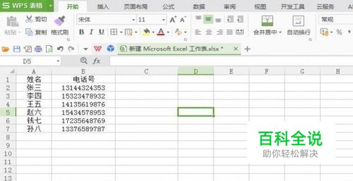 先新建一个Excel表格,随意在表格上编写一些姓名和电话号码,如下图所示。