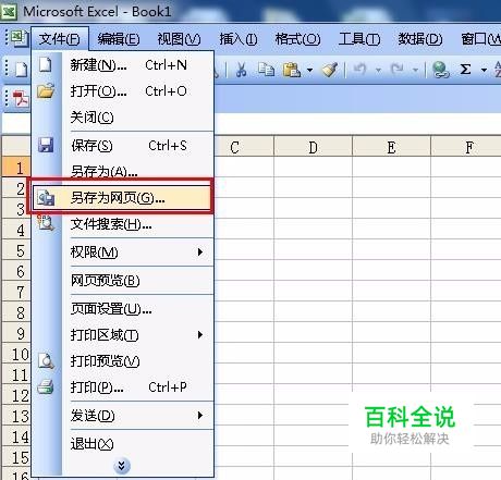 我们打开一个空白Excel文件,然后点击左上角的文件,在菜单中选择另存为网页。