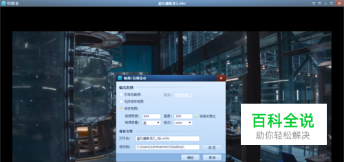 如下图所示界面,选择【保存视频】,再设置好视频宽高,视频格式,保存目录,设置好之后点击【确定】!
