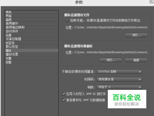 设定了存放盘后,学会清理垃圾。点击编辑--参数--媒体,即可参看,媒体高速缓存文件,要将媒体高速缓存文件更改在其他盘内,此外,确定近期对于工程文件无更改的,也可以对缓存文件进行清理处理。