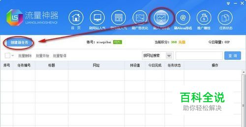 1. 首先,打开流量神器,登陆它。我们可以找到首页上的“刷人气排名”这个功能,点击它,并点击左边的“创建新任务”。