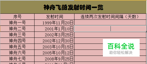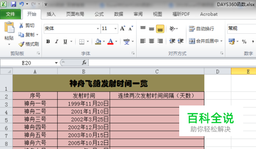DAYS360函数的使用方法 以如下表格为例,假设我们要计算连续两次发射活动的时间间隔。