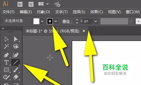 在工具栏中点击直线段工具,并设置描边色为黑色,大小为2pt