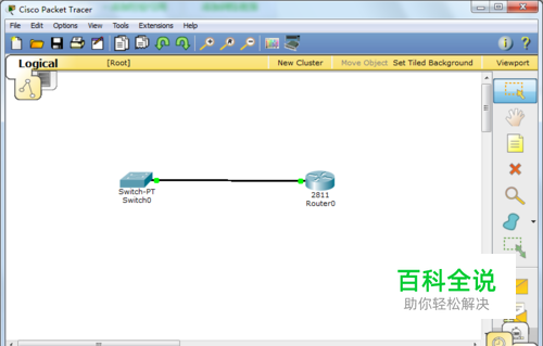 然后拖出一台2811类的路由器和一台交换机,如下图所示: