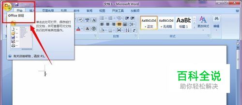 打开word软件程序,点击右上解的office图标按钮,如下图所示。