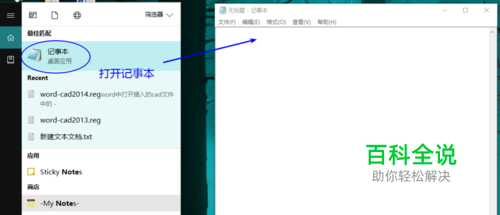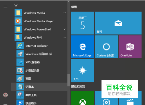 开始菜单》Windows附件》记事本,或者直接搜索“记事本”“notepad”,打开记事本程序;