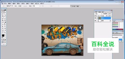 新建一个空白文件,放进一张图片,使它与背景层同样大小。