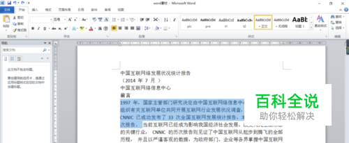 首先,直接选中需要添加删除键的文字,注意不要要选择多或者少了。