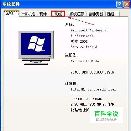在系统属性界面切换到“高级”选项卡