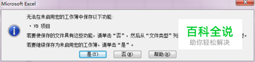 如下图所示,当我们在一个 Excel 电子表格中录制并编辑好宏以后,当要保存时软件提示我们 “无法在未启用宏的工作薄中保存以下功能”这样的信息。