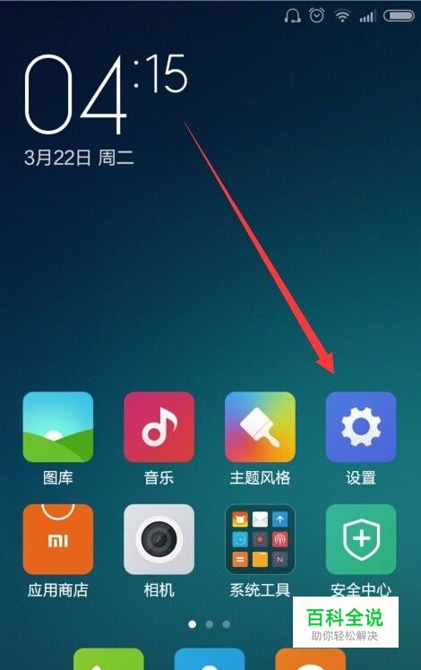 打开小米手机界面,在小米手机界面中有一个【设置】。这时我们点击设置,进行操作,如下图演示。