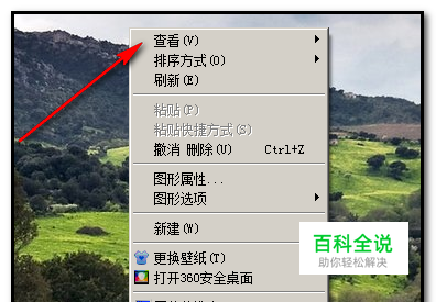 电脑的系统是WIN7系统;鼠标右键在桌面空白位置点下;弹出的菜单中点选“查看”;