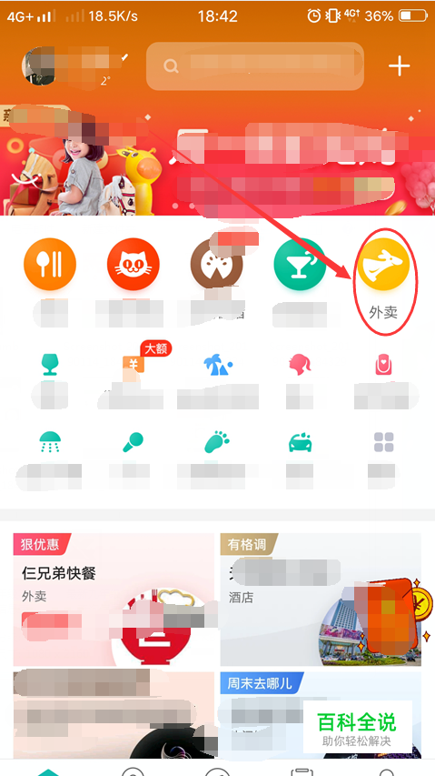 进入软件,然后,继续点击打开“外卖”。