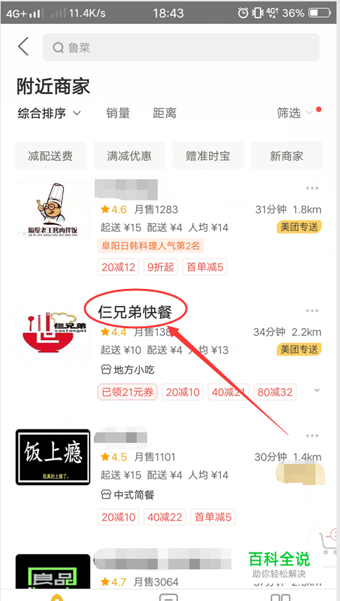 用手指将页面下滑到“ 附近商家”,系统会自动定位搜索你附近的商家。 然后,选择一家点击进去。