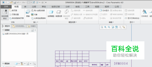 打开creo4.0软件,打开一个工程图文件。(工程图有表格,文本,文本)。如下图