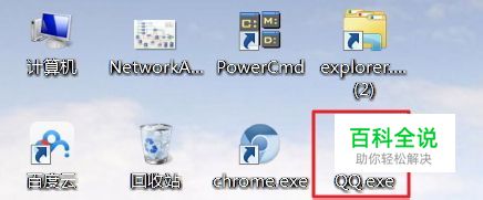 在下图的电脑桌面上能看到,红框中的“QQ.exe”快捷方式。