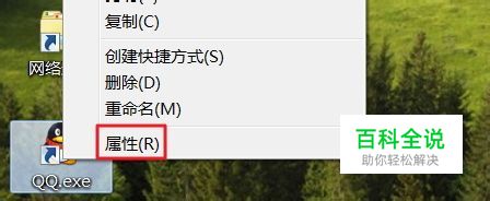 在“QQ.exe”快捷方式上单击右键,选择“属性”选项。