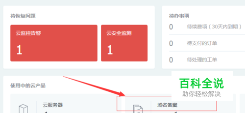 首先,进入到腾讯云的管理中心,并按照如下图所示进行操作,点击“域名备案”。您的域名备案都是在这里进行,您可以根据您购买的域名进行备案。