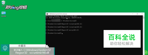 方法二:按“Win+R”弹出运行窗口,输入CMD,点击“确定”。在命令提示符窗口输入“C:\Windows\system32 regsvr32 vcruntime140.dll”即可修复成功。