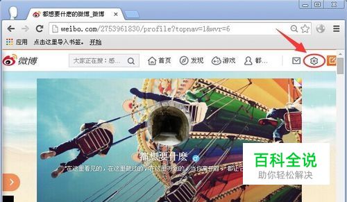 首先登录新浪微博帐号,然后在个人主页的右上角点击设置“齿轮”图标