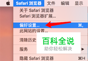 打开safari浏览器,选择偏好设置。