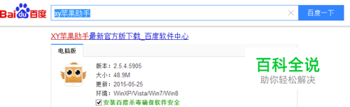如果我们的iphone6 plus软件出现闪退状况,这时我们在电脑上搜索并下载”xy苹果助手“。
