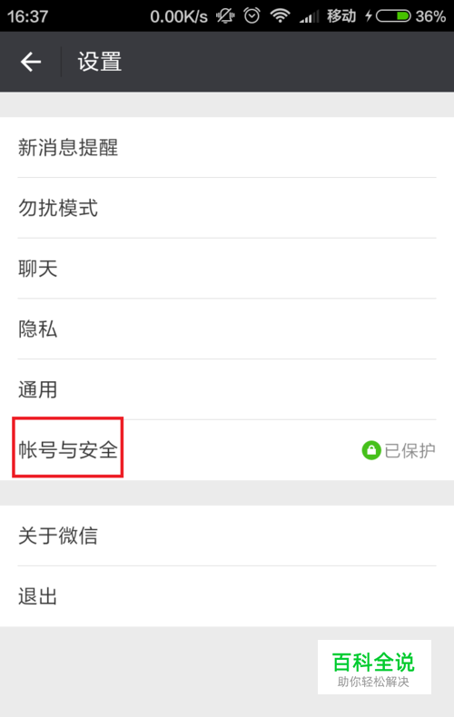跳转进入设置,点击进入“账号与安全”设置;