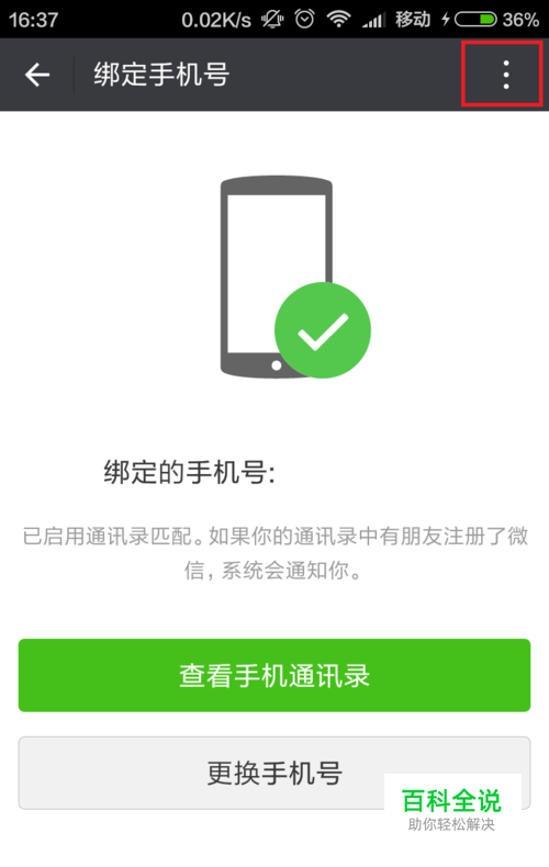 可见当前帐号绑定的手机号,点击右上角的菜单键;