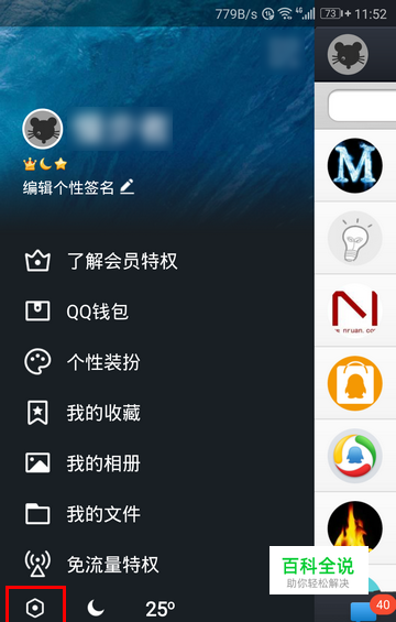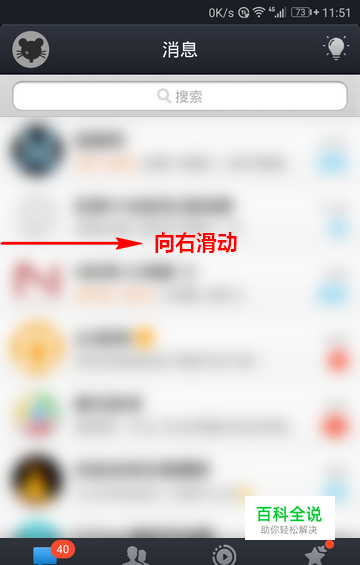 首先,在 QQ 的主界面用手指向右滑动,调出隐藏的主菜单。