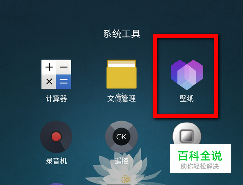 首先,进入乐视手机的桌面界面,如图所示,找到“系统工具”文件夹,找到其中的“壁纸应用”。 PS:默认的壁纸应用是在“系统工具”文件夹中的,找不到的话可以看看其他文件夹或桌面。