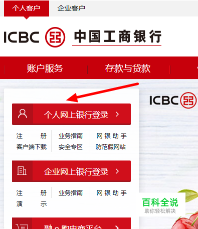 首先在电脑上打开工商银行的官网,然后在首页面点击个人网上银行登录。