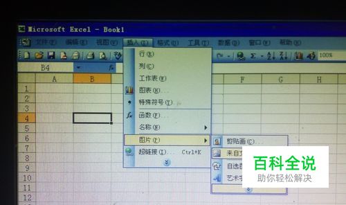 打开EXCEL2003,选择插入、图片、找到图片所在位置