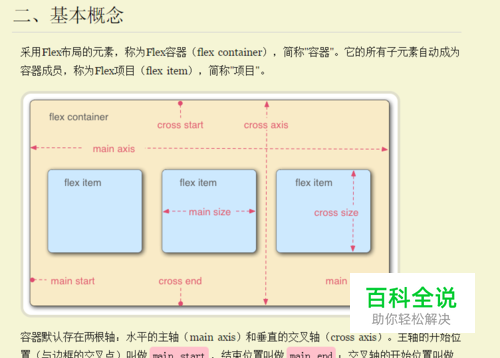 容器有六个属性: - 1:flex-direction属性决定主轴的方向(即项目的排列方向)。 flex-direction: row | row-reverse | column | column-reverse; row(默认值):主轴为水平方向,起点在左端。 row-reverse:主轴为水平方向,起点在右端。 column:主轴为垂直方向,起点在上沿。 column-reverse:主轴为垂直方向,起点在下沿。 - 2:flex-wrap属性定义,如果一条轴线排不下,如何换行。 flex-wrap: nowrap | wrap | wrap-reverse; nowrap(默认):不换行。 wrap:换行,第一行在上方。 wrap-reverse:换行,第一行在下方。 - 3:flex-flow属性是flex-direction属性和flex-wrap属性的简写形式, 默认值为row nowrap