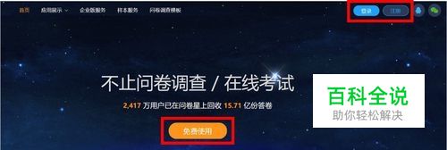 我们搜索 问卷星官网(下图1),进入官网后点击" 免费使用"(下图2)。 如果没有注册过,需要 填写信息注册(下图3)。
