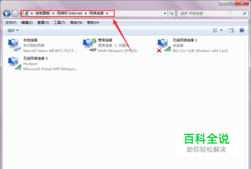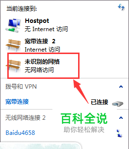 查看你电脑的本地连接是否为未识别的网络或者提示正在获取IP地址,下面以win7为例。