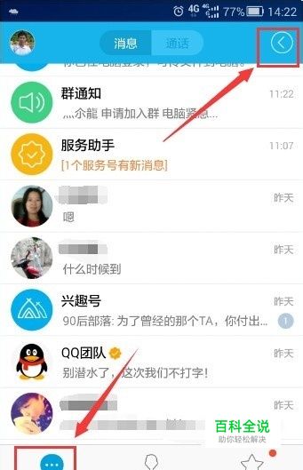 首先打开QQ,切换到消息页签,点击右上角的功能菜单展开按钮。