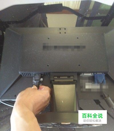 把vga连接线另一端接在电脑主机上,把螺丝锁紧,把电脑主机入口插头插上。