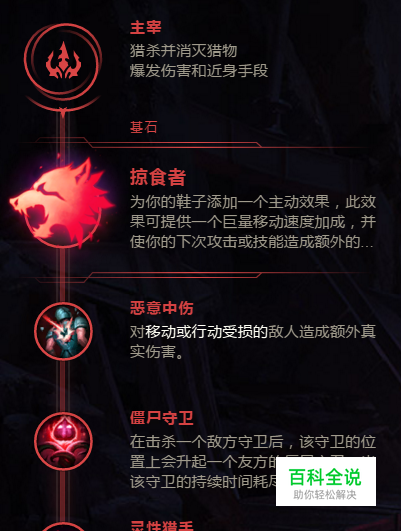 掠食者,主要运用团战,绕后眼位做好,开启鞋子上的掠食者主动,进行开团。 恶意中伤配合冰杖(核心装备)在团战中多次触发。僵尸守卫,充足的视野保证发育。灵性猎手配合不同的主动装备,进行强化。 海克斯3个装备有共同的CD买其中一个即可。