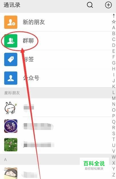 在“群聊”页面,选择100人的微信群
