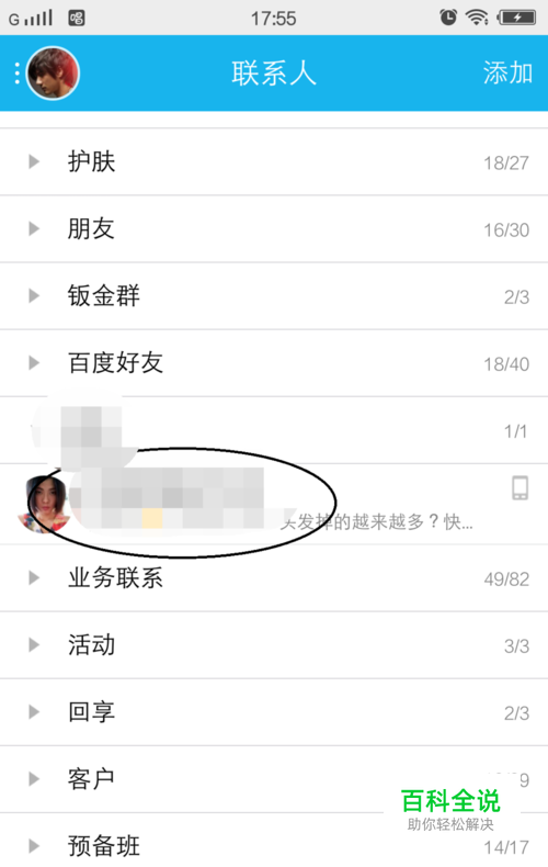 在屏幕下面的中间点击联系人以后进入到联系人窗口,在联系人分组里面找到并点击一个好友,如图所示: