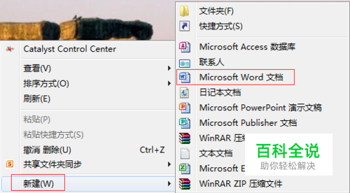 在桌面空白处点击右键,出现多个选项,选择“新建”,并在其下拉目录中选项“word文档”选项
