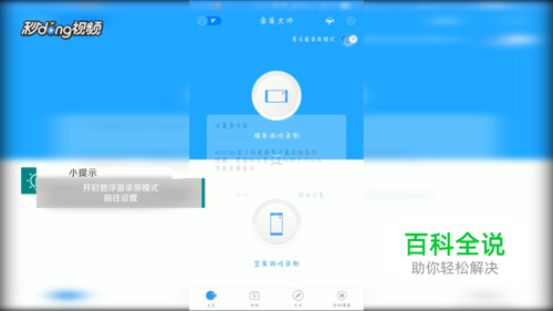 打开录屏大师界面,右上角开启悬浮窗录屏模式。
