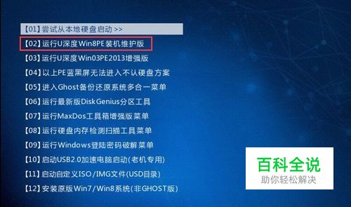 首先需要准备一个U盘启动盘(这个U盘启动盘是要提前准备的哦),然后将其连接至电脑,之后需要做的就是重启电脑,出现开机画面时按下当前系统的启动快捷键(大部分电脑都是F8或F11,部分电脑请自行寻找),然后选择从U盘启动,之后就会进入到U盘启动盘的主菜单中,如图所示: