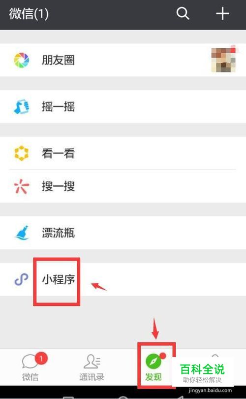 登录微信,在“发现”里,点击进入小程序。