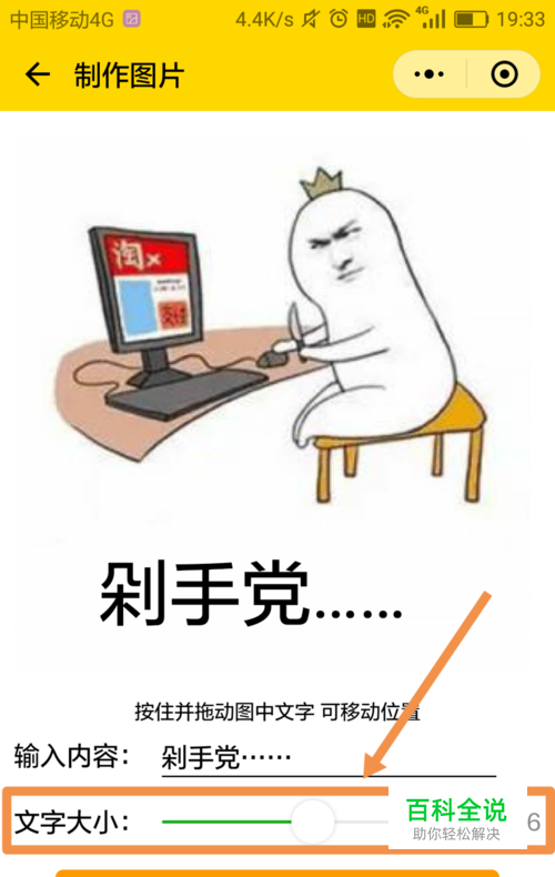 进入该图片的制作图片界面,在【输入内容】后的输入框中输入文字,修改图片中的文字; 【文字大小】可以调整图中文字的大小,如图所示: