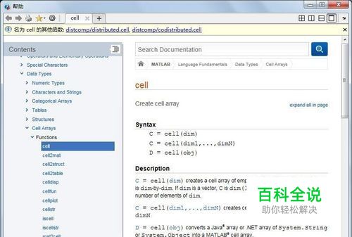 第五,关于元胞数组cell的介绍,可以在命令行窗口输入doc cell,然后回车查看帮助文档对cell的介绍。