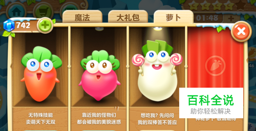 同时,为了一次性获得金萝卜,建议选择第三个白萝卜,因为他又12滴血.