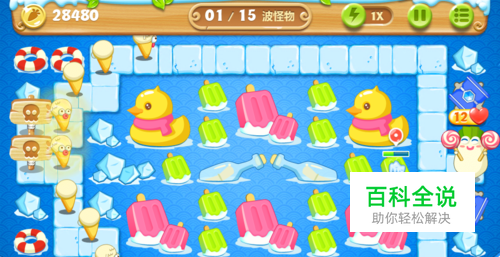 接着开始清理下方的红色雪糕,然后把上方的小黄鸭也干掉,