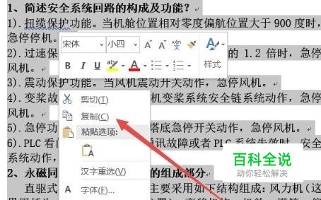 首先打开要转换的Word文档,然后有右键点击选中的所有的文字,在弹出菜单中选择“复制”菜单项。
