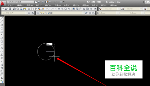 在单击在拖动就可以看到一个圆,如果要准备设置圆的话,在输入500,在空格键确认。